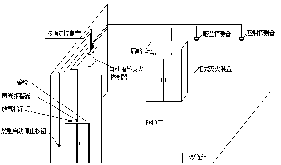 氣體滅火報(bào)警控制系統(tǒng)一般配有兩種不同類型的火災(zāi)探測器。控制主機(jī)上有“自動(dòng)”和“手動(dòng)”轉(zhuǎn)換功能(也可在防護(hù)區(qū)外單獨(dú)設(shè)置轉(zhuǎn)換開關(guān)),當(dāng)將其置于“自動(dòng)”位置時(shí),滅火裝置處于自動(dòng)狀態(tài)。