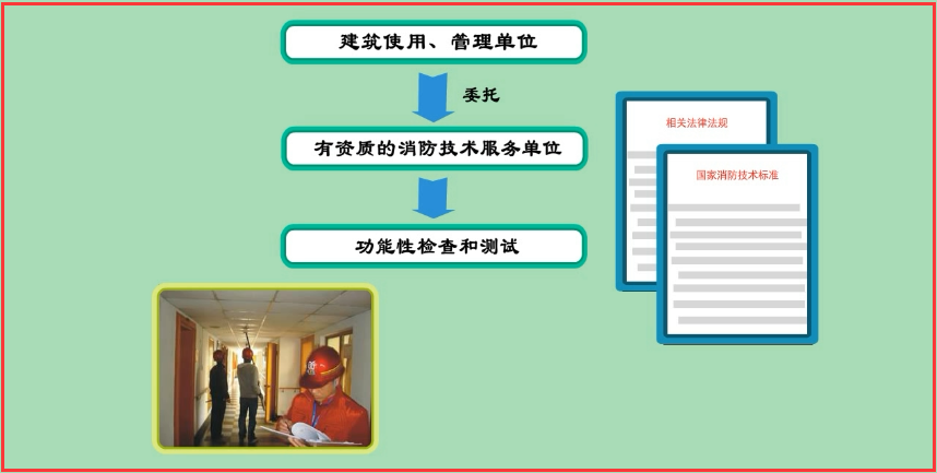 年度檢測是建筑使用、管理單位按照相關法律法規(guī)和消防技術標準,每年度開展的定期功能性檢查和測試;建筑使用、管理單位的年度檢測可以委托具有資質的消防技術服務單位實施。年度檢測內容和要求見本章第四節(jié)“系統(tǒng)的檢測與驗收”中“系統(tǒng)檢測”的內容。