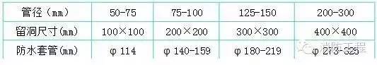 3.嚴(yán)格按照標(biāo)準(zhǔn)圖集加工制作防水套管、穿墻套管,套管長度按結(jié)構(gòu)施工圖尺寸確定,套管管徑參照下列標(biāo)準(zhǔn):